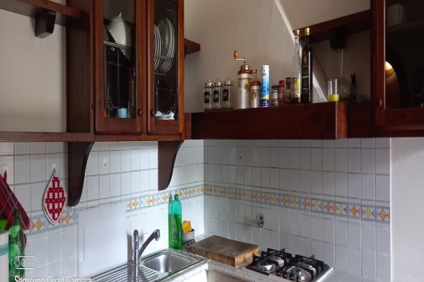piano terra : cucina e ripostiglio, soggiorno con camino, bagno.